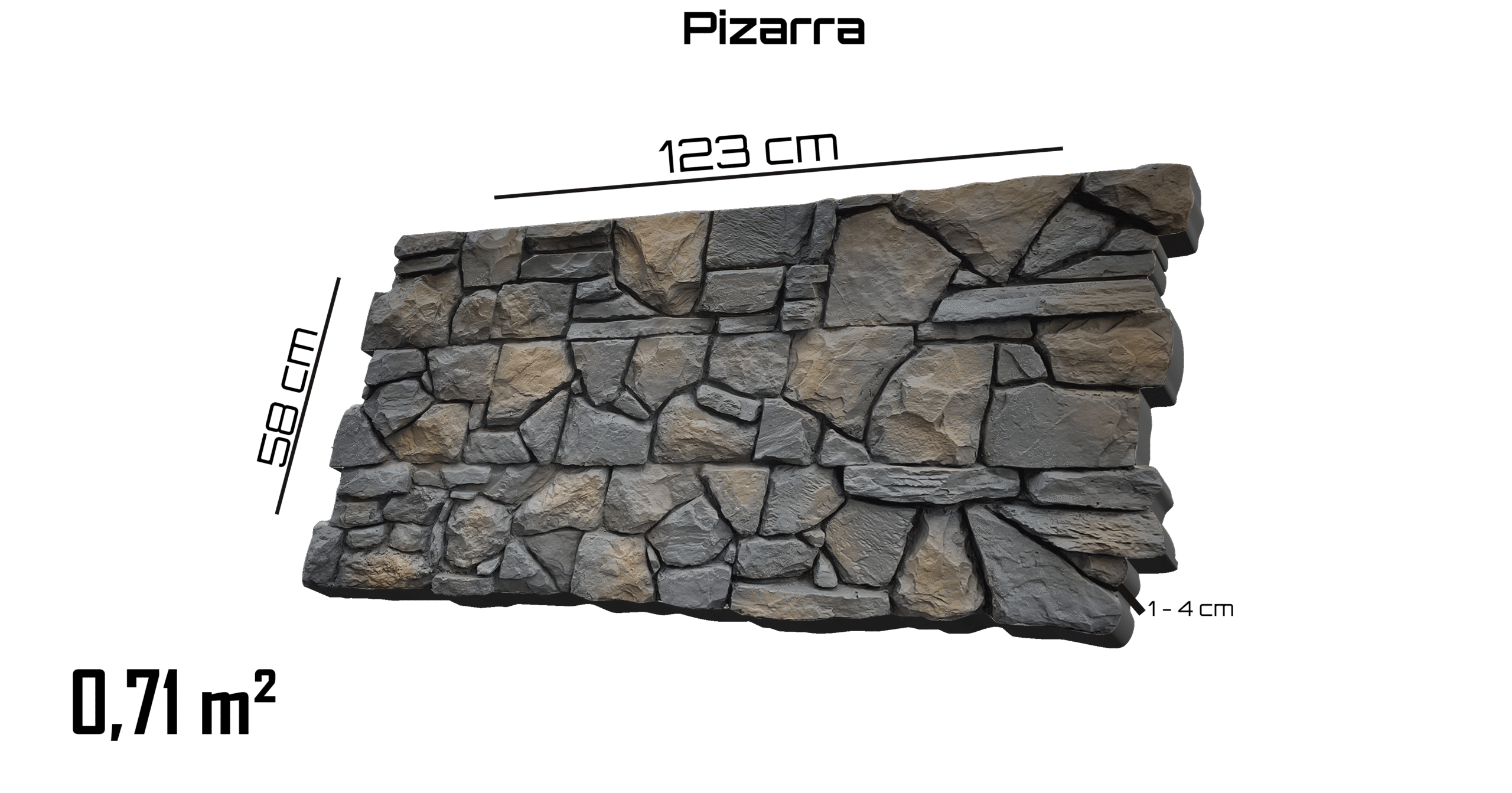 Pizarra Nero – İç ve Dış Mekan için (Poliüretan) 3B Taş Görünümlü Duvar Paneli (123 cm x 58 cm)